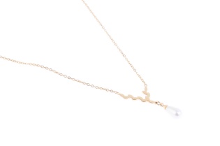 Elegancki, złoty łańcuszek z uroczą przywieszką, ozdobioną pięknie mieniącym się dżetami.Wymiary naszyjnika: