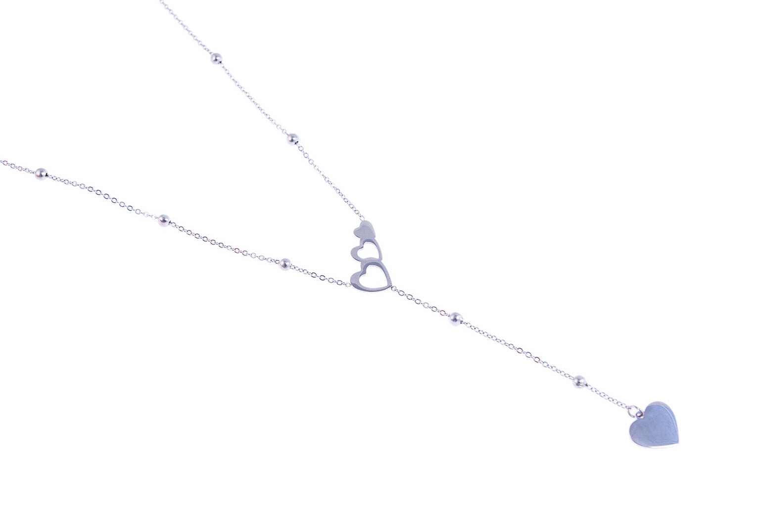 Elegancki, srebrny łańcuszek z uroczą przywieszką w kształcie serduszek.Wymiary naszyjnika: