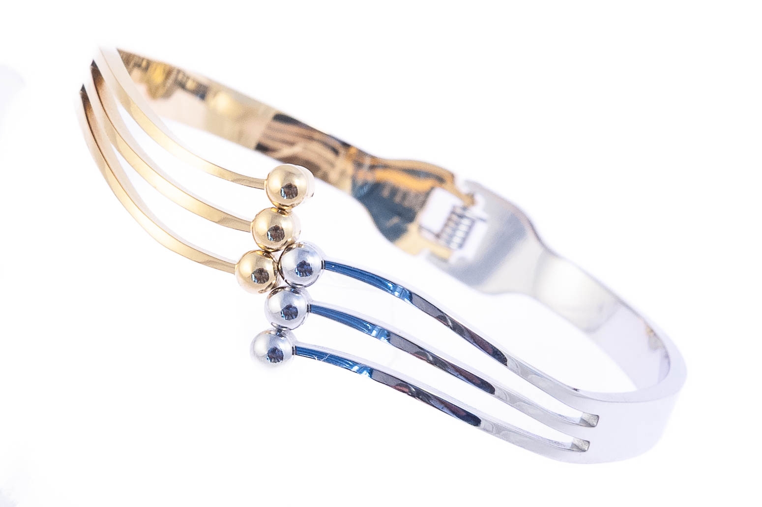 Elegancka, sztywna bransoletka. Bransoletka jest w kolorze złotym i srebrnym.Wymiary bransoletki: