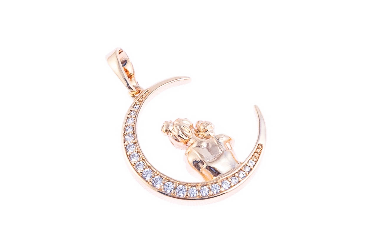 Elegancka, złota przywieszka w kształcie księżyca, mamy i dziecka.Wymiary przywieszki: