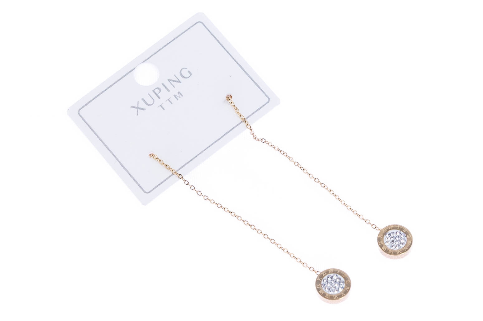 Eleganckie wiszące, złote kolczyki w kształcie okręgów ozdobione dżetami.Wymiary kolczyków: