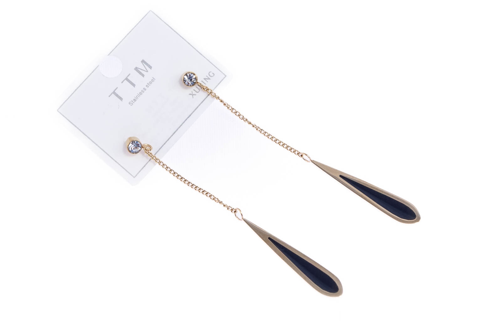 Eleganckie wiszące, złote kolczyki ozdobione dżetami i czarną emalią.Wymiary kolczyków: