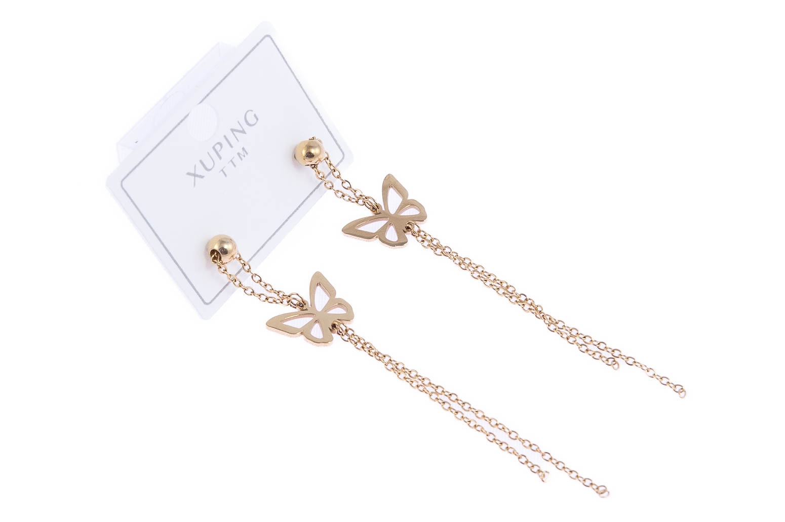 Eleganckie wiszące, złote kolczyki ozdobione motylkami.Wymiary kolczyków: