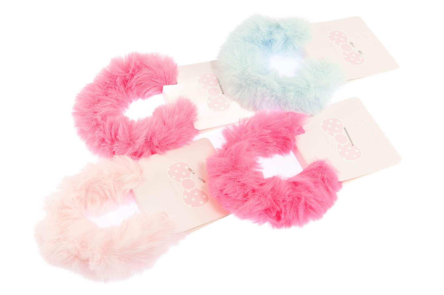 Futerkowe gumki do włosów, są wytrzymałe i dobrze trzymają włosy.Zestaw składa się czterech kolorów: morelowy, błękitny, jasny i ciemny różowy.