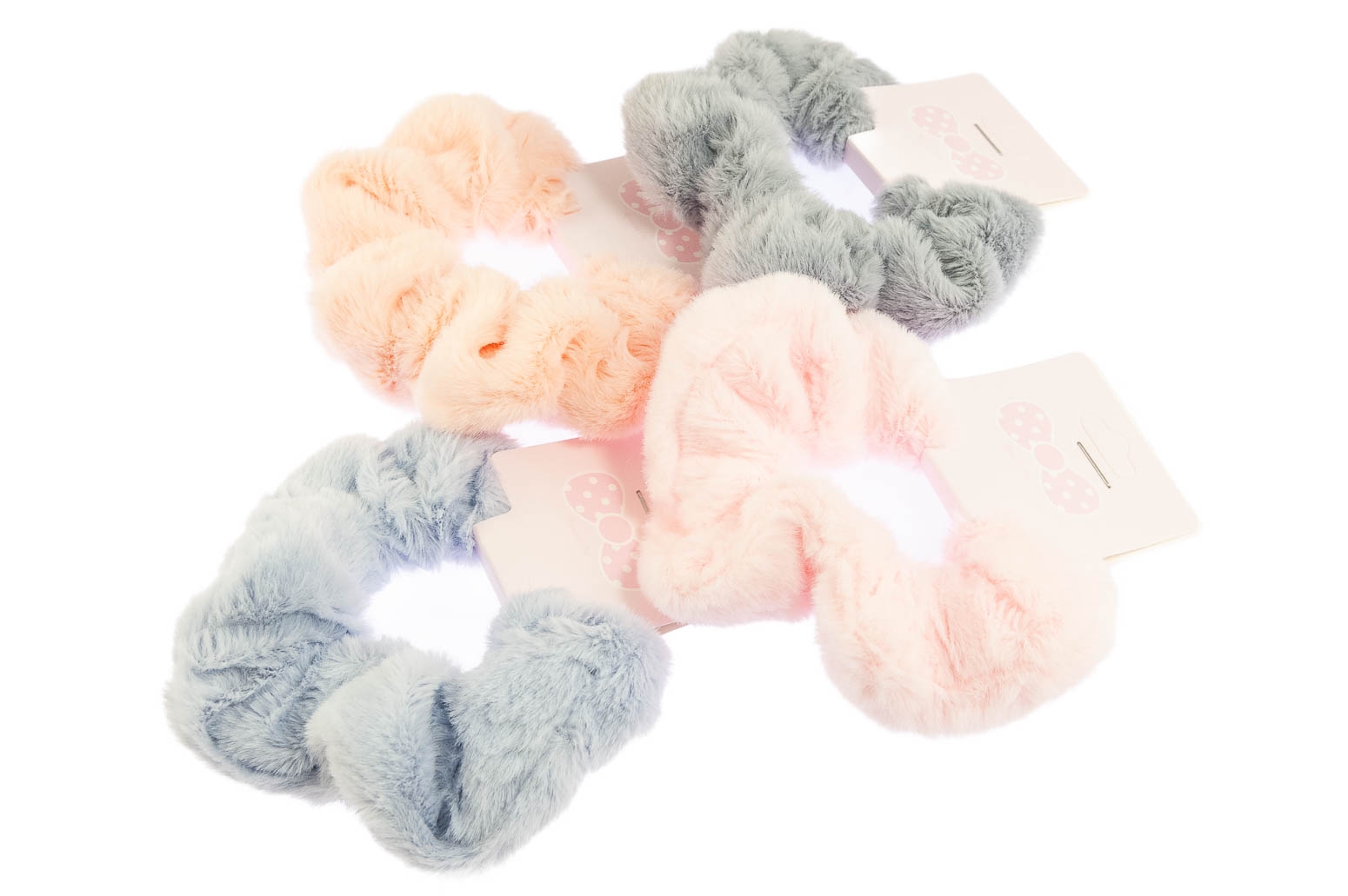 Futerkowe gumki do włosów, są wytrzymałe i dobrze trzymają włosy.Zestaw składa się czterech kolorów: szary, błękitny, jasny i ciemny różowy.