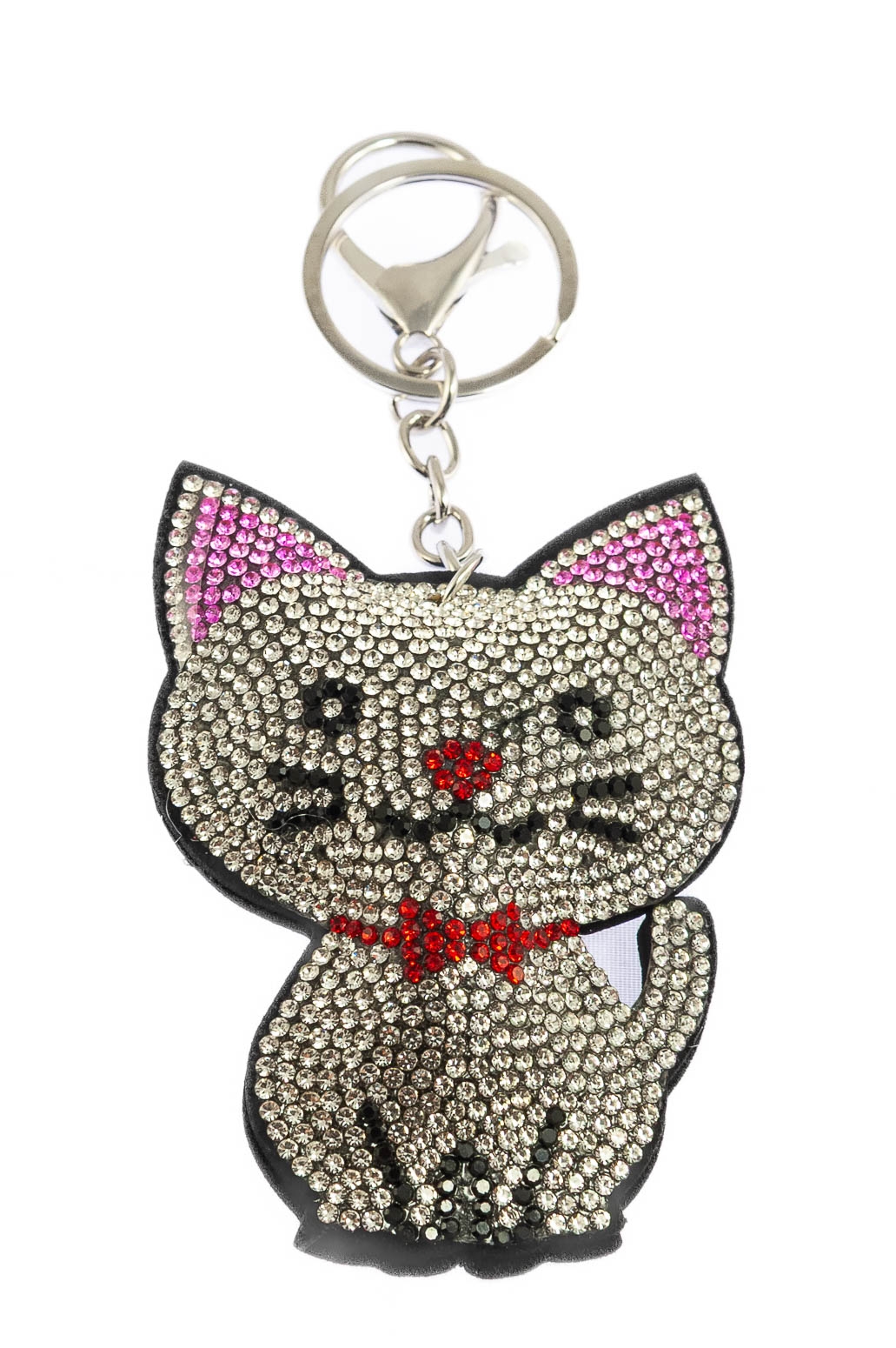 Elegancki brelok w kształcie kotka, ozdobiony dżetami w kolorze białym.Brelok idealnie nada się na prezent, który ucieszy każde dziecko.