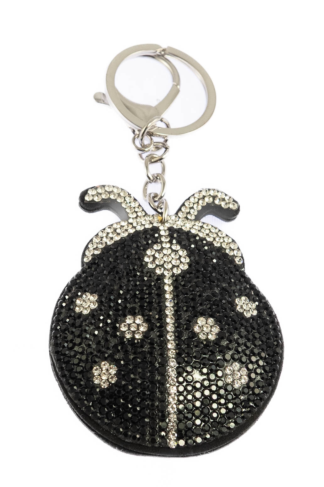 Elegancki brelok w kształcie biedronki, ozdobiony dżetami w kolorze czarnym.Brelok idealnie nada się na prezent, który ucieszy każde dziecko.