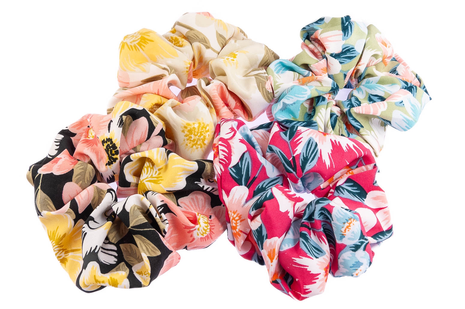 Eleganckie owijki ozdobione kwiatuszkami, są wytrzymałe i dobrze trzymają włosy.Zestaw składa się z czterech kolorów: beżowy, zielony, różowy i czarny.