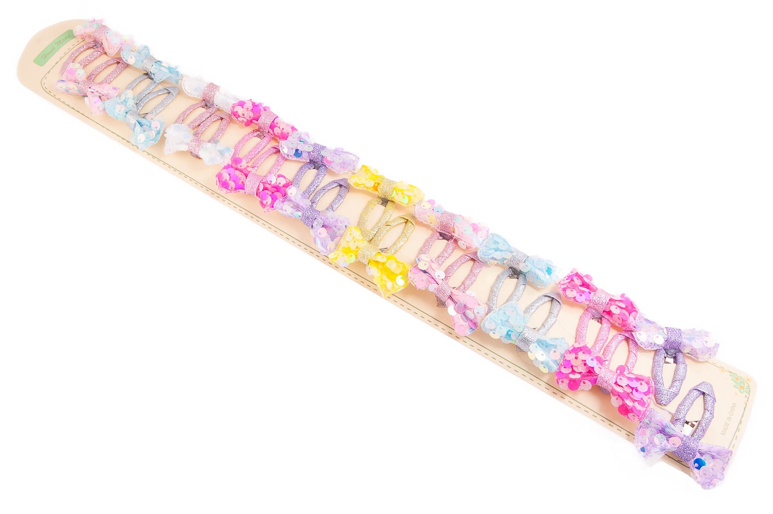 Klasyczne spinki do włosów z uroczą ozdobą w kształcie kokardki.Zestaw składa się z pięciu kolorów: niebieski, fioletowy, żółty, jasny i ciemny różowy.