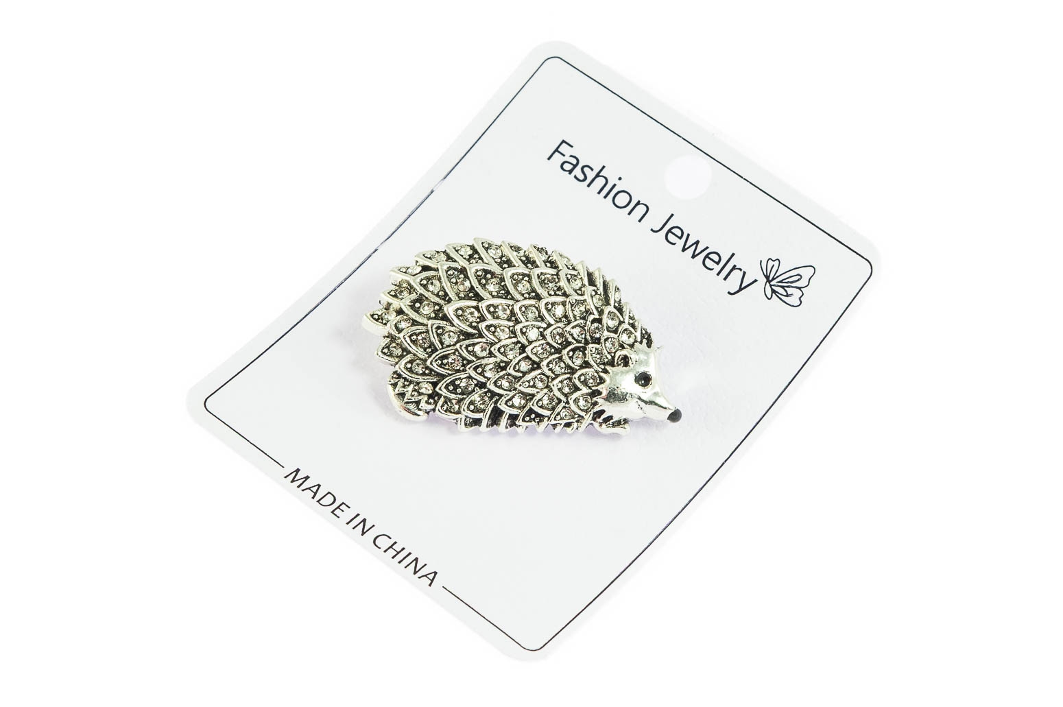 Elegancka broszka w kształcie jeża. Przywieszka w kolorze srebrnym, ozdobiona szlifowanymi kamieniami.Ozdoba doda szyku każdej stylizacji.