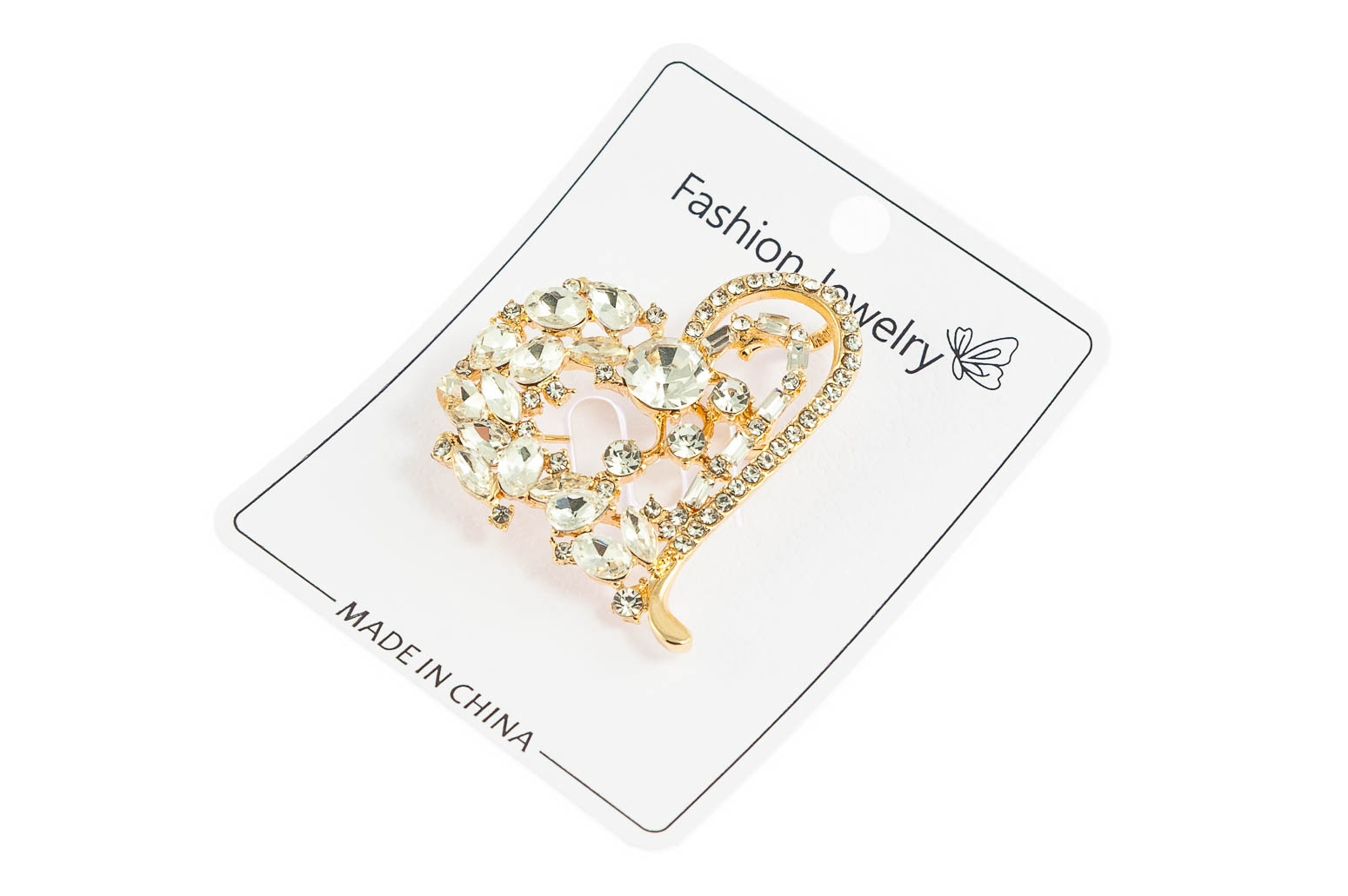 Elegancka broszka w kształcie serca. Przywieszka w kolorze złotym, ozdobiona szlifowanymi kamieniami.Ozdoba doda szyku każdej stylizacji.