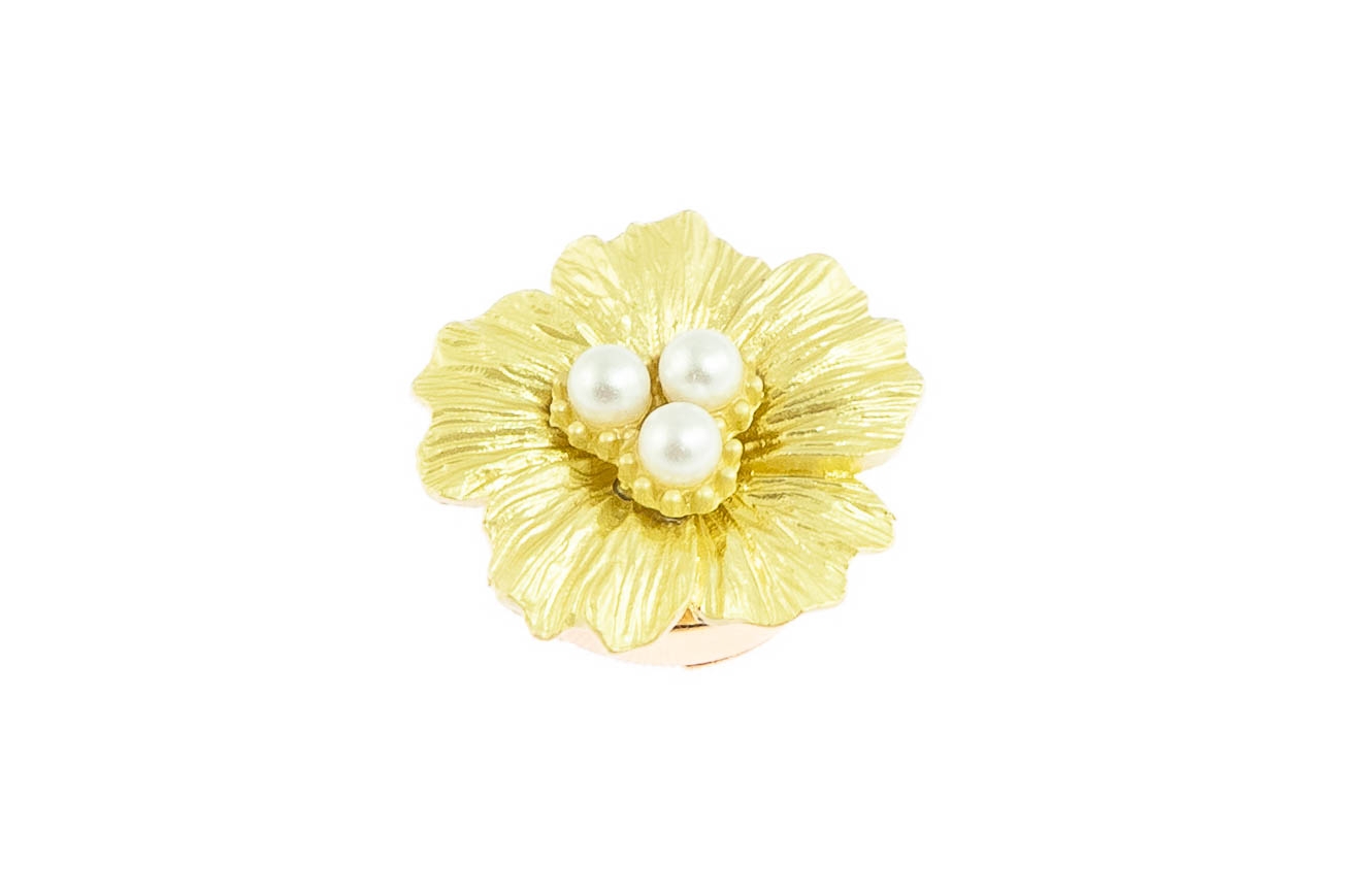 Elegancka ozdoba maskująca guzik mankietowy w kształcie kwiatka. Przypinka w kolorze złotym.Ozdoba doda szyku każdej stylizacji.