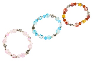 Elegancka bransoletka wykonana ze szlifowanych koralików i serduszek.Zestaw składa się z trzech kolorów: czarny, beżowy i czerwony.