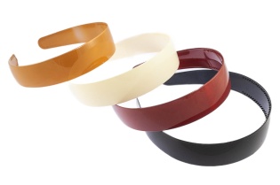 Opaska pokryta materiałem, ozdobiona uroczymi kokardkami.Zestaw składa się z trzech kolorów: biały, jasny i ciemny różowy.