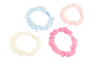 Klasyczne gumki do włosów z uroczą ozdobą w kształcie kokardki.Zestaw składa się z trzech kolorów: beżowy, jasny i ciemny różowy.