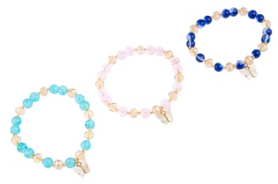 Elegancka bransoletka wykonana ze szlifowanych koralików i koralików z pękanego szkła.Zestaw składa się z czterech kolorów: biały, różowy, granatowy i błękitny.