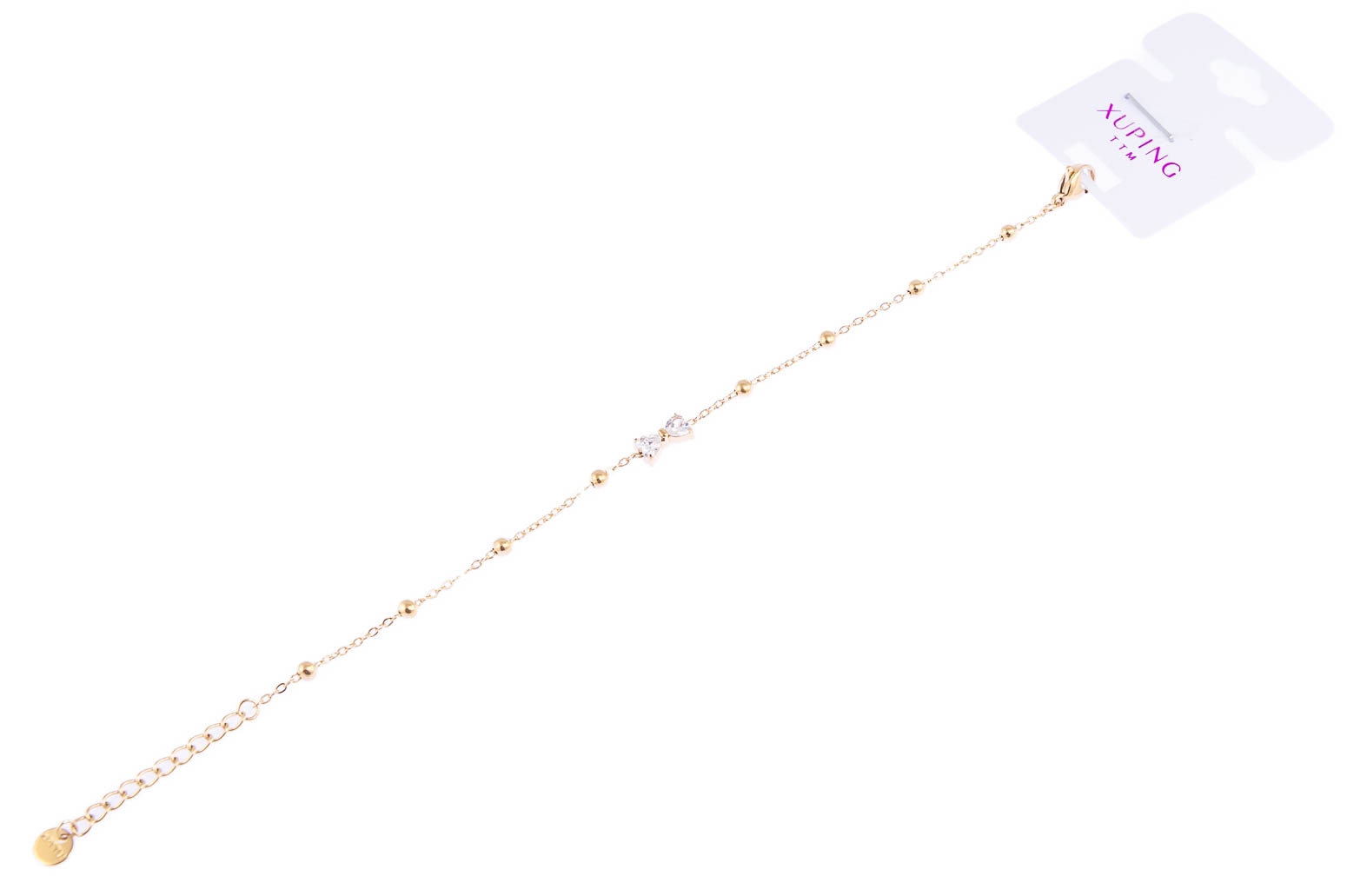 Elegancka bransoletka z uroczą ozdobą w kształcie kokardki. Bransoletka jest w kolorze złotym.Wymiary bransoletki: