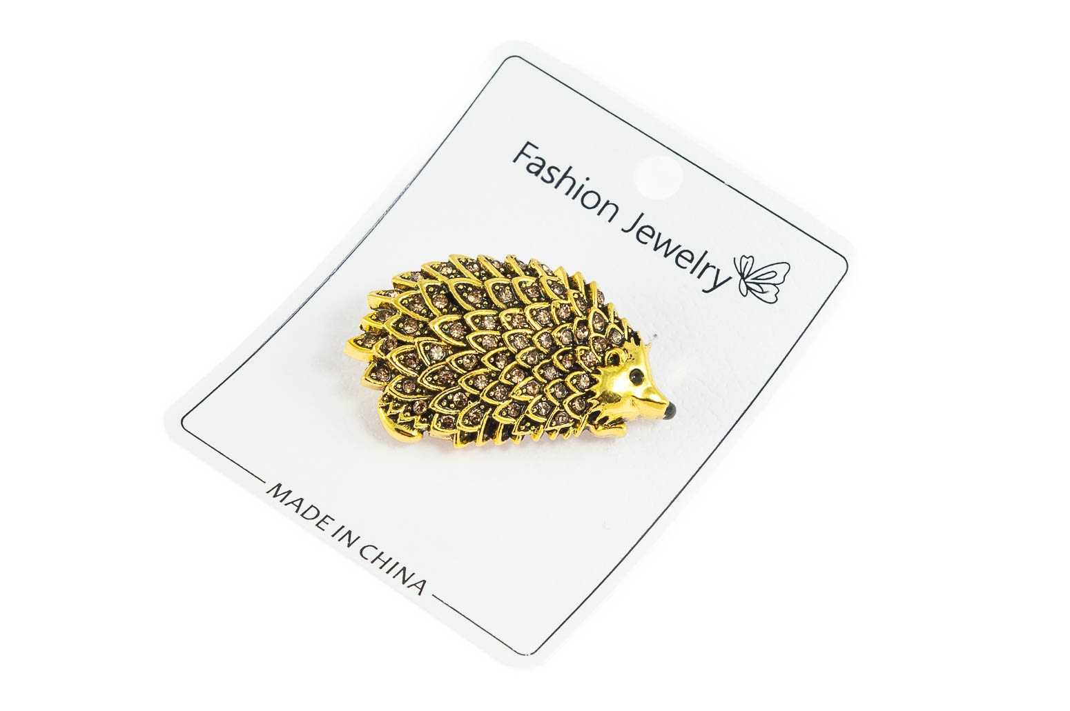 Elegancka broszka w kształcie jeża. Przywieszka w kolorze złotym, ozdobiona szlifowanymi kamieniami.Ozdoba doda szyku każdej stylizacji.