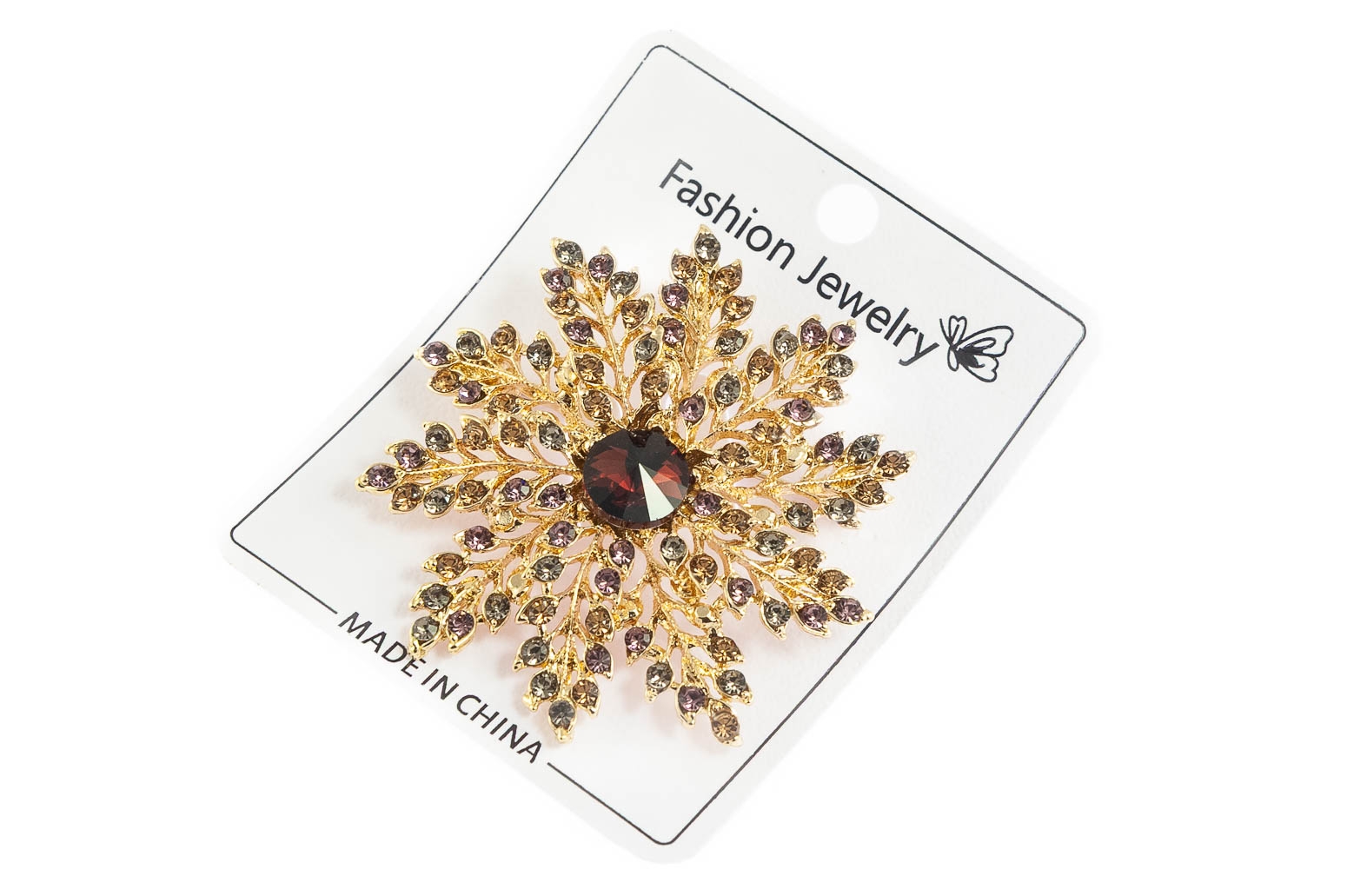 Elegancka broszka w kolorze złotym, ozdobiona brązowymi, szlifowanymi kamieniami.Ozdoba doda szyku każdej stylizacji.