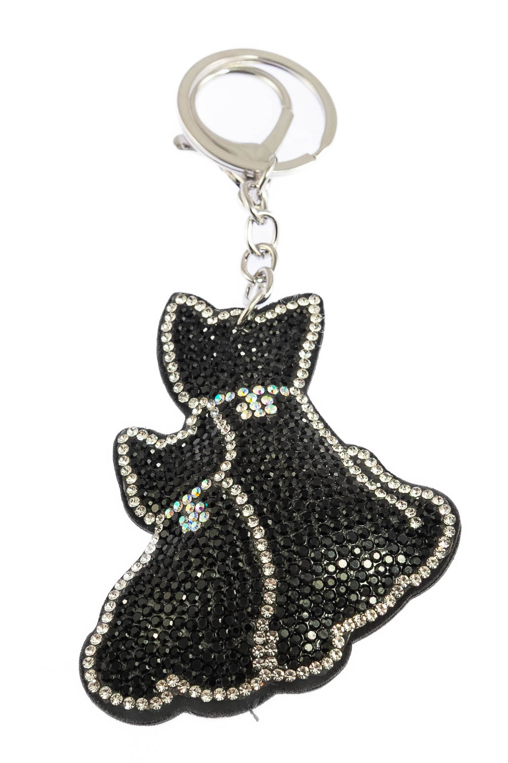 Elegancki brelok w kształcie kotków, ozdobiony dżetami w kolorze białym i czarnym.Brelok idealnie nada się na prezent, który ucieszy każde dziecko.
