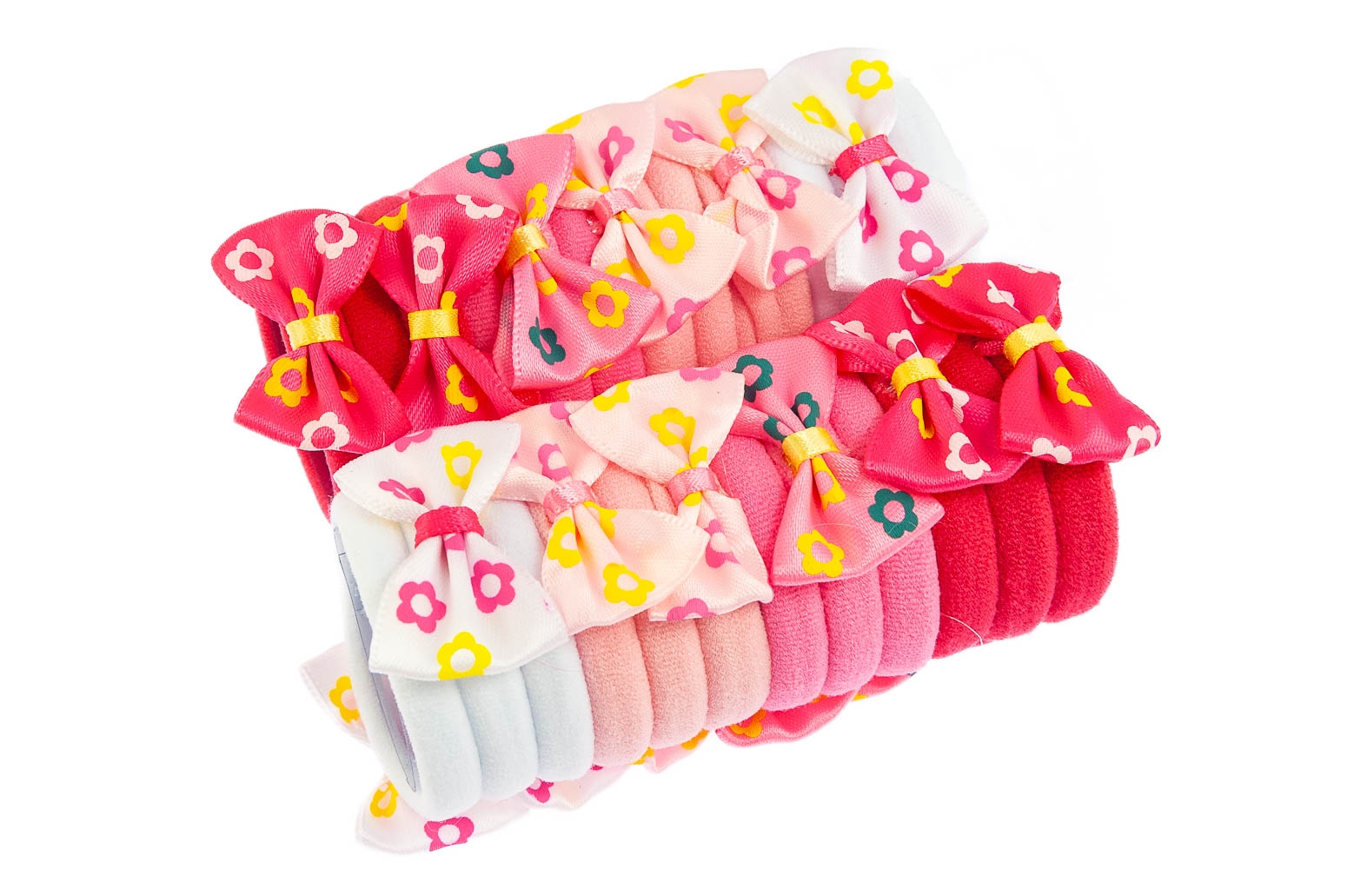 Klasyczne gumki do włosów z uroczą ozdobą w kształcie kokardki.Zestaw składa się z czterech kolorów: biały, morelowy, jasny i ciemny różowy.