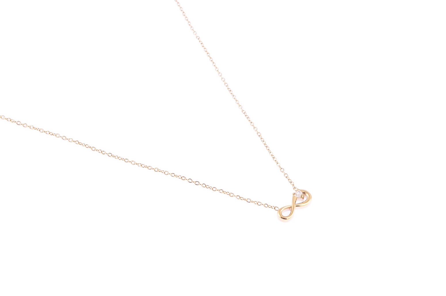 Elegancki łańcuszek z uroczą przywieszką w kształcie nieskończoności. Naszyjnik jest w kolorze złotym.Wymiary naszyjnika: