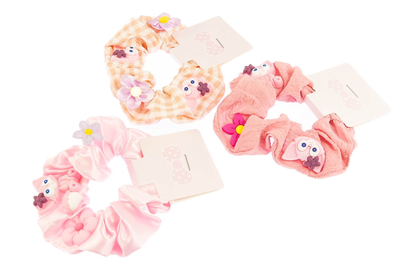 Gumki do włosów, są wytrzymałe i dobrze trzymają włosy, ozdobione uroczymi elementami.Zestaw składa się trzech kolorów: morelowy, beżowy i różowy.