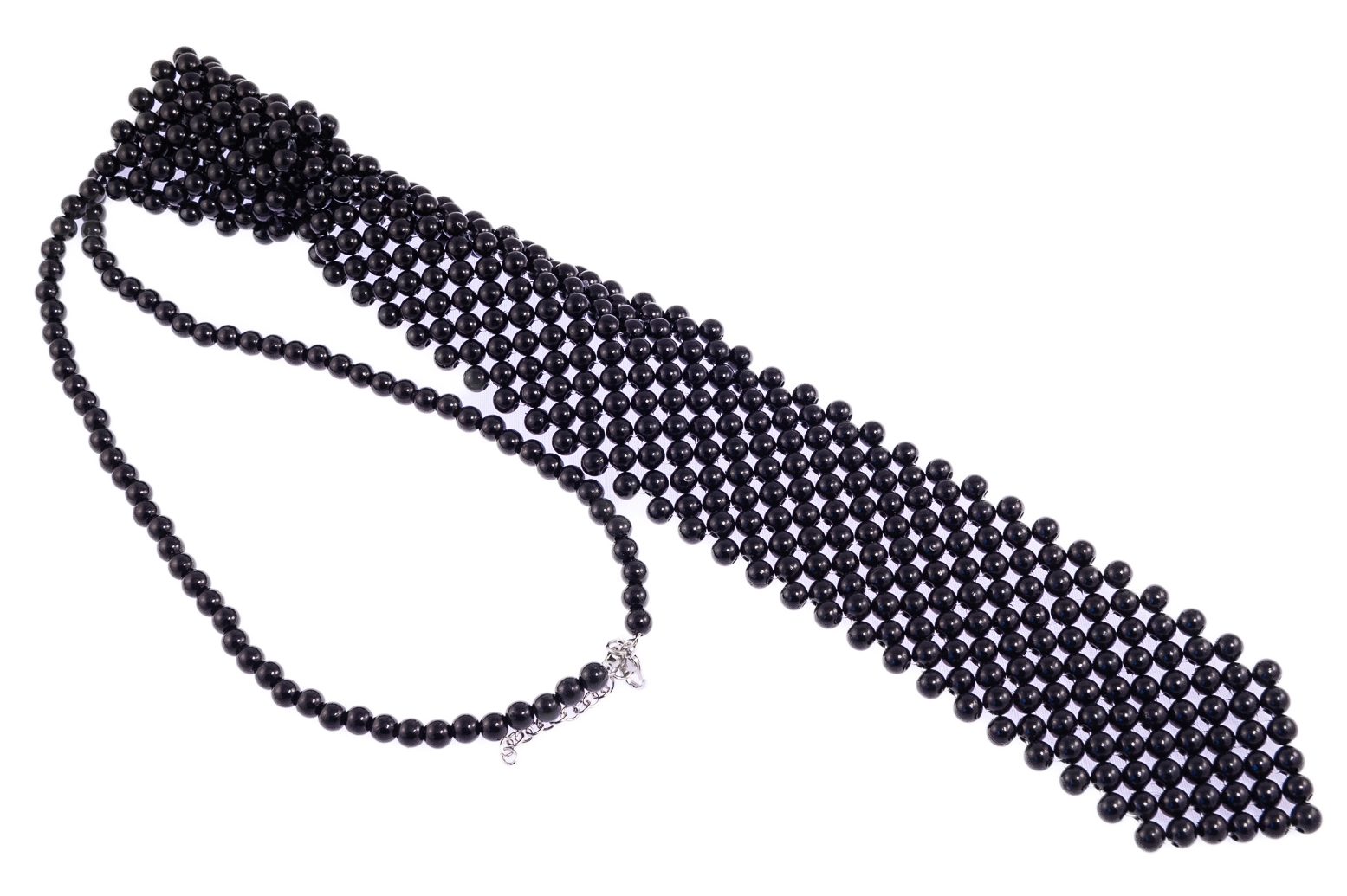 Modny krawat składający się z czarnych koralików.Wymiary: