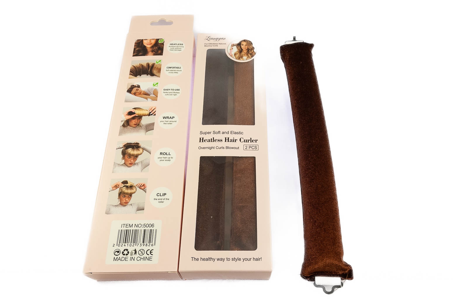 Akcesoria do zakręcenia włosów. Jest to walec z haczykami na szczytach.Przedmiot jest w kolorze brązowym.